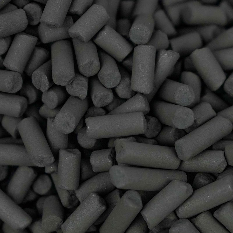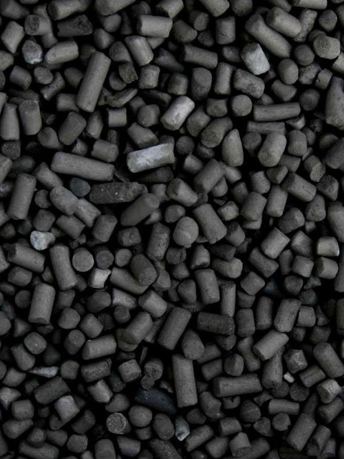 Activated carbon formed into pellets, designed for specific applications where controlled flow and minimal dust are important.